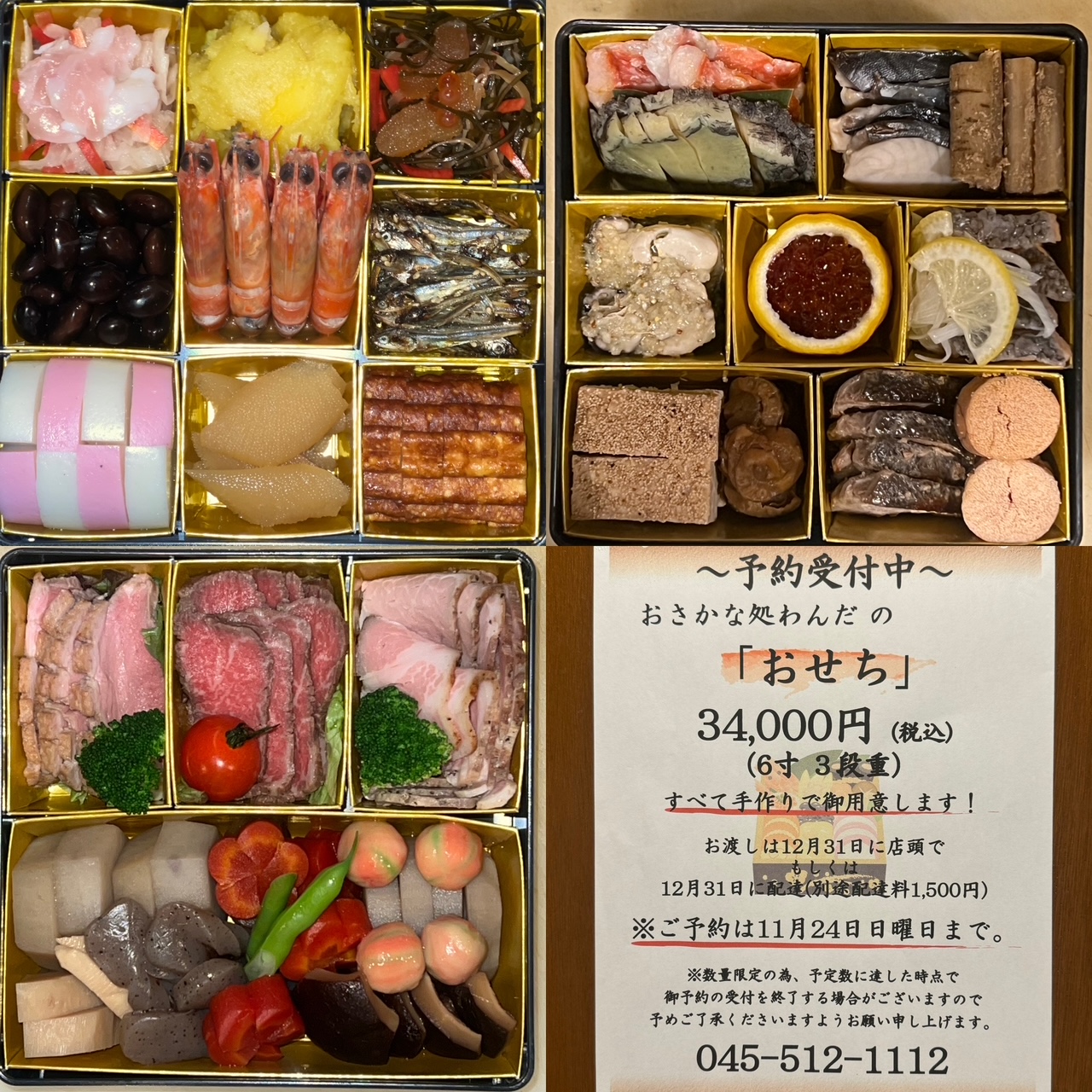 毎年好評をいただいてる「おせち」のご予約受付中です! 〆切は11月24日日曜日です。 予定数になり次第、受付を締切る場合がございます。